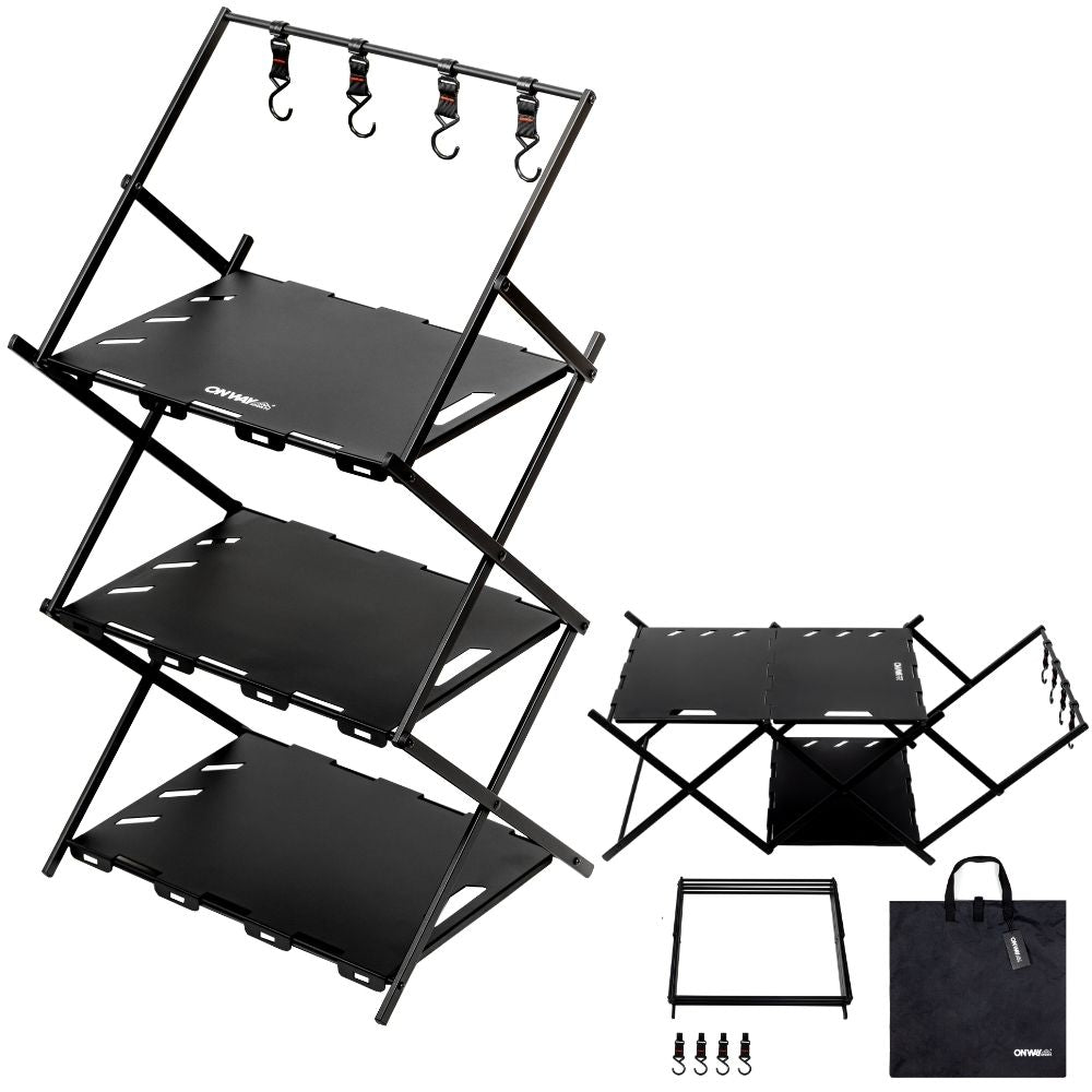 - 【二つのモードで柔軟に使用】この多機能アウトドアラックは組み立て方によって多様な使い方が可能です。収納ラックとしてもキャンプテーブルとしても、実際のニーズに応じて自由に切り替えられます。